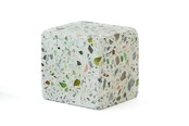 廃ガラスや瓦、広川青石などの端材とセメントと混ぜて成形。大理石のような模様と、ひとつひとつ異なる表情が趣深くインテリアのアクセントとして彩りを与えます。 大きさ50×50×50㎜